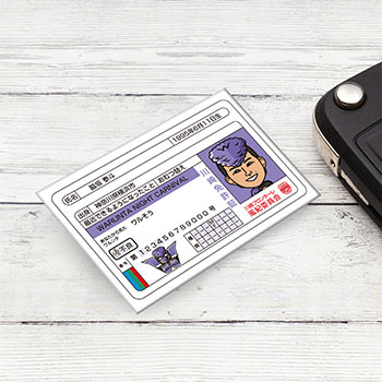 どこか懐かしいデザインの免許証風の缶バッジです。