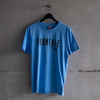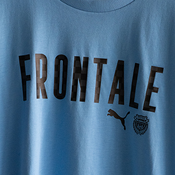 胸元に「FRONTALE」とデザインされたオリジナルデザインのTシャツです。よく見てみると今シーズンのユニフォーム柄がデザインされているシンプルながらもオシャレなTシャツです。