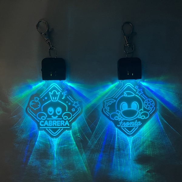 ワルナイトカーニバルの時に発売した光るアクリルキーホルダー。今回は好評につき、ふろん太とカブレラデザインで新発売!! こちらも充電して光らせることができます!!