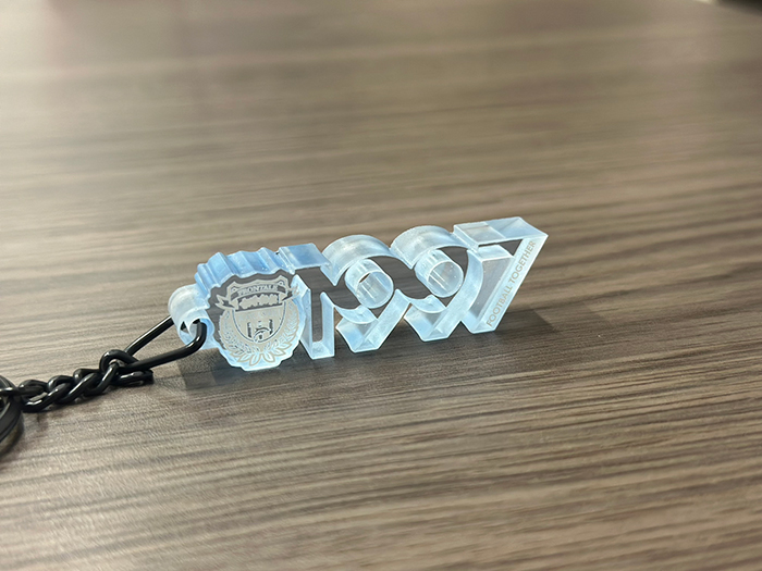 観光地のオブジェとしてありそうな10mm厚のアクリル素材クリアキーホルダー。川崎フロンターレにまつわる数字をモチーフにした2種類ですが、一見フロンターレっぽさがなく、さりげなくアピールができます!!