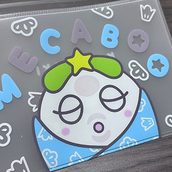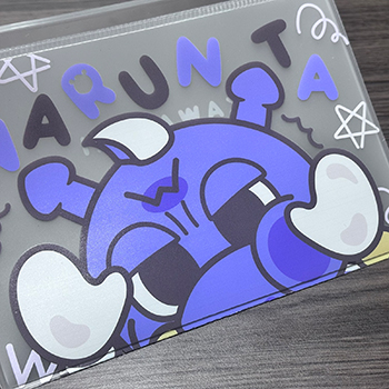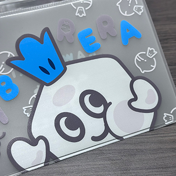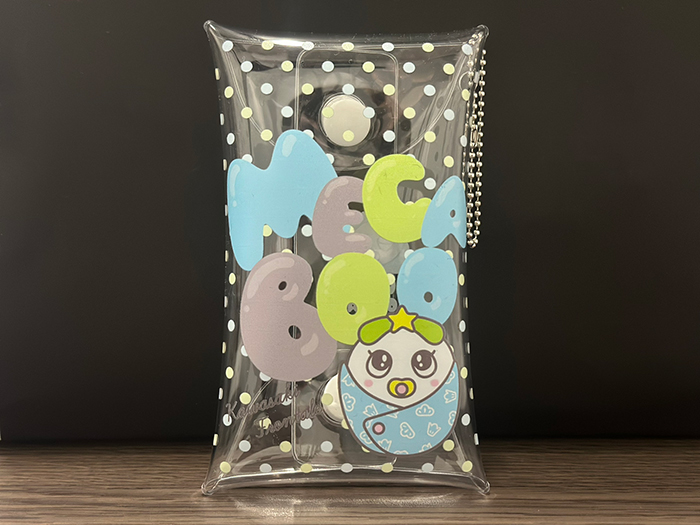 “むぎゅ”っとしたマスコットがかわいいデザインのクリアポーチです。バッグの中を整理整頓するためにぜひお使いください。
