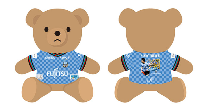 メインビジュアルを背中にデザインしたベアぬいぐるみになります。ユニフォームと一緒に飾りましょう!!