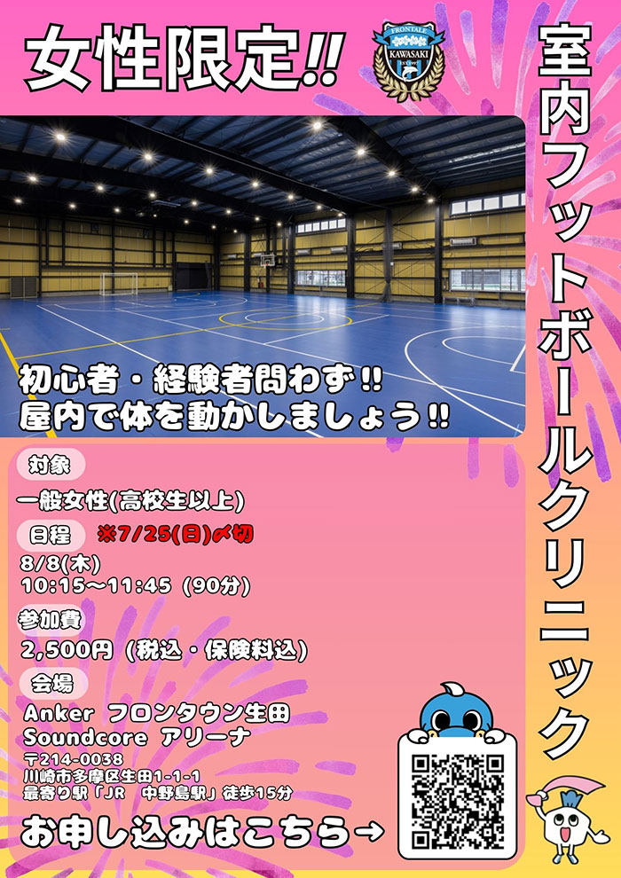 川崎フロンターレ「8/8(木) 女性限定!! 室内フットボールクリニック」係