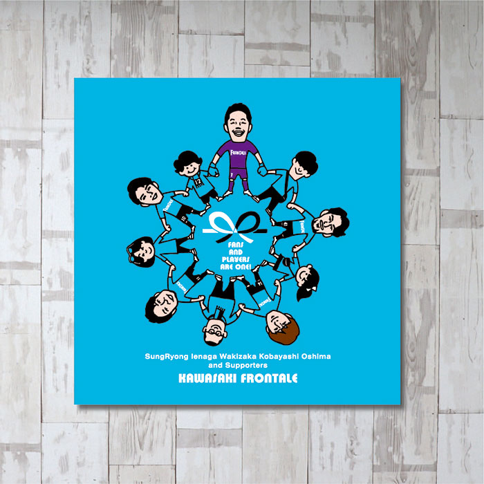 川崎フロンターレに関わる人が手を結んで輪を作っているデザインのアートパネルになります。