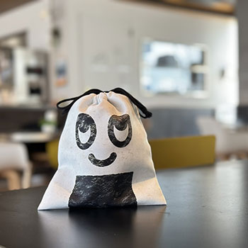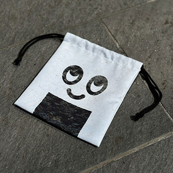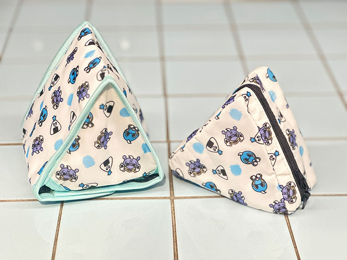 三角おむすび発祥の地といわれる「東海道川崎宿」にちなみ、お“むすび”巾着も発売!! ポイントはどこかに潜む梅干し...。