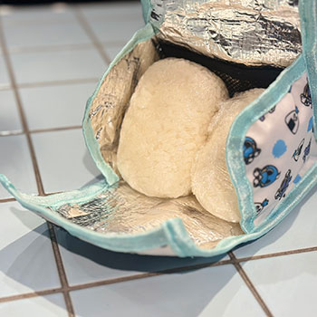 三角おむすび発祥の地といわれる「東海道川崎宿」にちなみ、お“むすび”ケースを発売!! あるとうれしい保冷剤ポケット付きです。