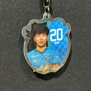 見る角度によって選手のキリっとした表情とエンブレムに変化するアクリルキーホルダーです。選手の気持ちとエンブレムと結ばれています。