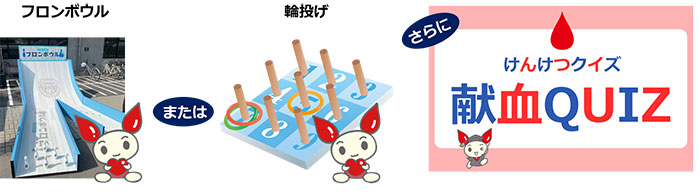 アトラクション(フロンボウルか輪投げ)に参加して献血クイズにチャレンジしよう! アトラクションの点数次第で記念品をGET!