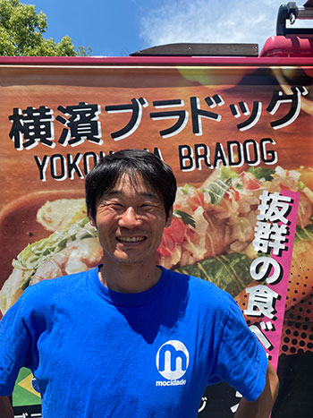 6月の市制記念試合にオーナーを務めるホットドッグを販売し、完売したフロンターレOB・岡山一成さんのキッチンカー。ご好評につき、平日ナイターを盛り上げるべく出店が決定!