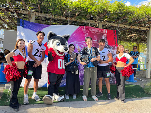 この日は「アメフトーーク」が開催されるということで、富士通フロンティアーズのチアリーダーを務める「フロンティアレッツ」が来場! フロンタールズとしてもおなじみの皆さんのパフォーマンスで盛り上がりましょう!!