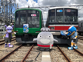 ・並べた電車の前でマスコットキャラクターと記念撮影!!