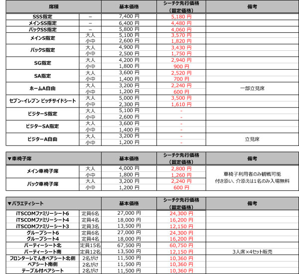 ※先行入場券権付きチケットはシーズンチケット保有者向け最速先行販売(シーチケ先行)のみでの販売となりますので、ご注意ください。