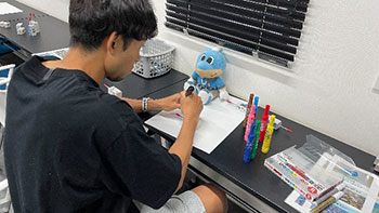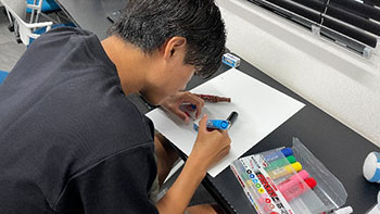 サンゴを海中に植付ける時に使用する台座に、選手が直筆でメッセージやイラストを描いた実物を展示します。選手が描いた台座は、ワークショップでサポーターの皆さんに描いていただく台座とともに、サンゴを括り付けて恩納村の海中にて植付をします。そのほかブースでは、恩納村の魅力や、村のサンゴや環境に対する取り組みをご紹介します。