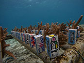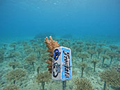◇選手直筆!サンゴ植付用台座展示、恩納村PR・取り組み紹介