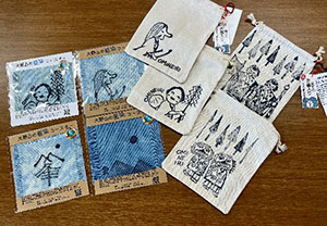 コースターや藍染きんちゃく袋など日常的に使えるものから、手ぬぐいなどの記念品が揃っていますので、ぜひご購入ください。