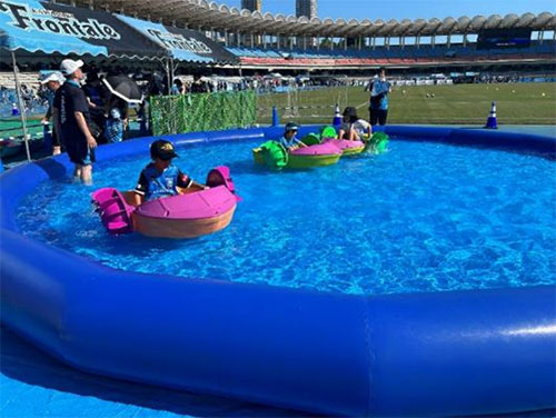 巨大プールに張った水の上で涼みながら、パドルボートで駆け回ろう!!