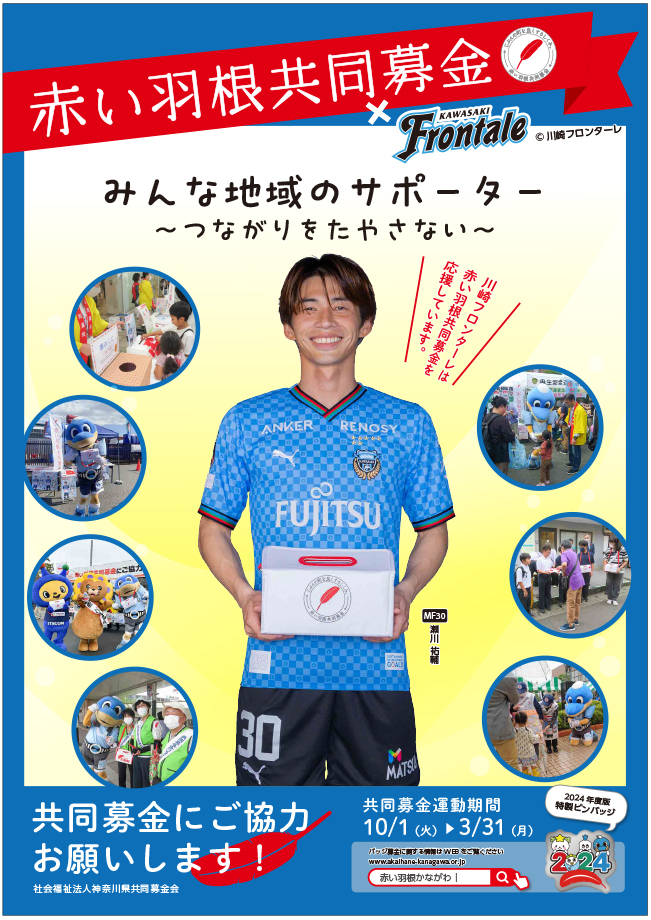 川崎フロンターレでは、社会福祉法人 神奈川県共同募金会が実施する「赤い羽根共同募金」の川崎市内で行われる募金運動に関して、今年度も協力することになりましたのでお知らせいたします。