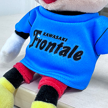 ちょこんとかわいいお座り姿のミッキーマウスがフロンターレカラーのウェアを着用して登場!!