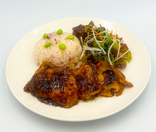 生姜焼きをNYっぽく、バルサミコ酢を使ったソースでさっぱりした味わい! 十五穀米を使用しているので、 バランスが取れたワンプレートです。