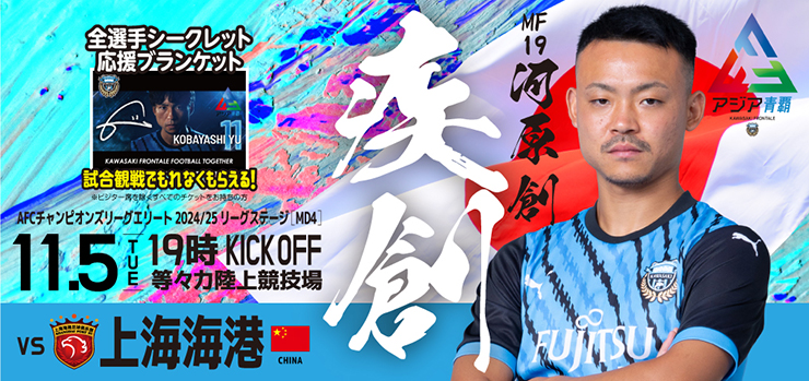 ※詳細は『11/5 上海海港「チケット販売(全選手シークレット応援ブランケット付きチケット)」のお知らせ』をご確認ください。