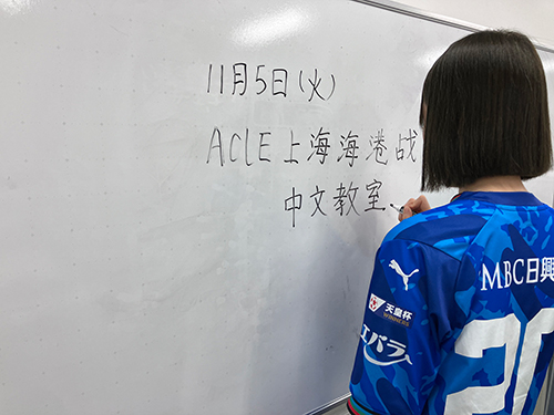 ACLEは、アジアの国々の文化に触れるチャンス!! 今回の対戦相手は、中国を代表するクラブの「上海海港」。普段なかなか触れることの少ない中国語を、2012年に来日したフロンターレサポーターでもある、中国人の李先生が優しく教えてくれます。本場の中国語を、サッカーに関する言葉やあいさつなどクイズを交えて楽しくみんなで学ぼう!!