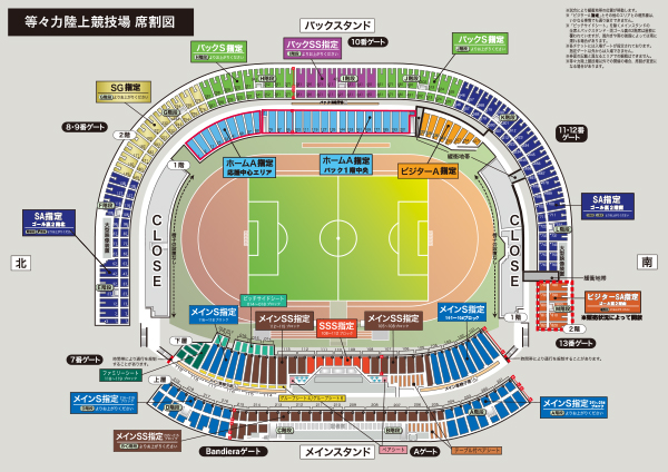 ※ゴール裏1階(北側、南側)は閉鎖となります。