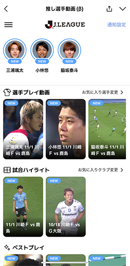 ユーザーが登録した「お気に入り選手」の動画が、試合後各アプリでどなたでも視聴可能となります。