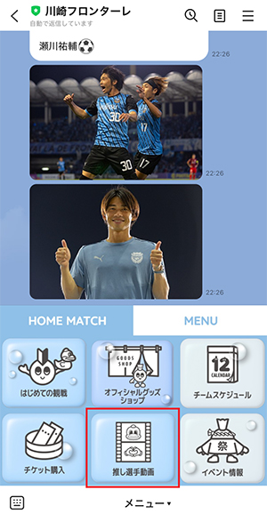 ②LINEトーク画面にて設定されている『推し選手動画』をクリックし、JリーグID連携