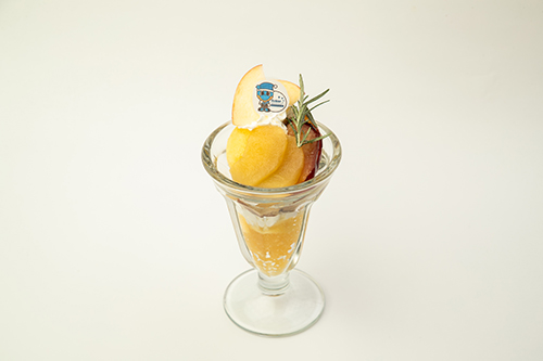 陸前高田産の紅玉を使用。リンゴゼリー、リンゴのコンポート、リンゴアイス、フレッシュりんごと、さまざまなリンゴの味が楽しめる贅沢リンゴパフェ。セット用のハーフサイズもご用意しています。