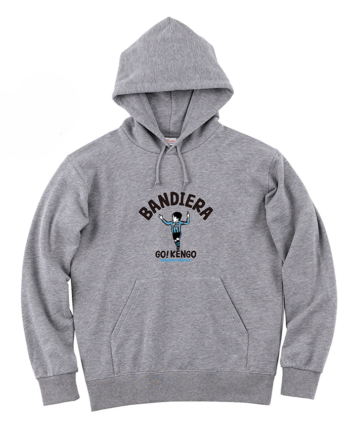 ケンゴの印象的なシーンをイラスト化。イラストは、多くのブランドやキャラクターコンテンツのデザインで有名で、手描きにこだわり、手の震えやインクの滲みなど自然に起きる“歪み”を大切にし、温かくやわらかなデザインが特徴な「コウシュウマサル」氏によるもの。デザインを大きく前面にプリントしたパーカーになります。