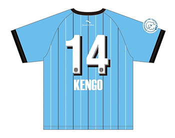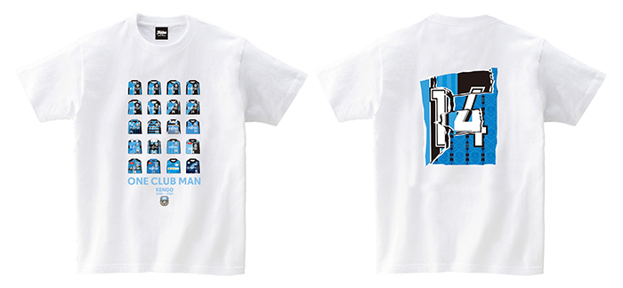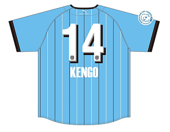 ケンゴが過去に着用したユニフォームをメインモチーフにデザインしたTシャツです。前面にはユニフォームデザインを、背面には背番号である「14」を各ユニフォームデザインでマッシュアップしました。