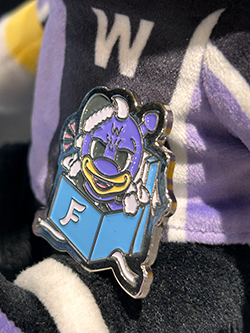 大好評のピンバッジプレンゼントを実施! AZZURRO NEROではフロンターレグッズ3,500円(税込)以上お買い上げの方にクリスマスピンバッジ「GIFTBOXワルンタ」を1つプレゼント。