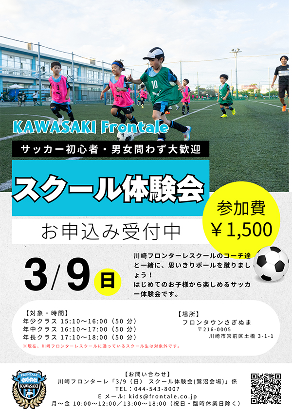 川崎フロンターレ「3/9(日)スクール体験会(鷺沼会場)」係