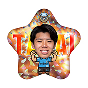 ホームゲームにて勝利した時のみ販売する限定ガチャフロ。2025シーズンは星型のホロ仕様!! 歓喜のガッツポーズをとる選手がみなさまの手元に届くよう、熱い応援を!!