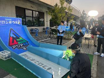 | ルール | ・1人2球チャレンジ ・湾曲した壁にボールを蹴り、壁にボールを転がして反対側のピンを倒そう! ・倒した本数に応じてACLE限定のトレカをプレゼント! |