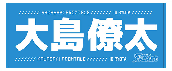 全選手対応の選手名フェイスタオル。綿素材のホワイトタオルにフロンターレブルーで選手名をデザイン!!