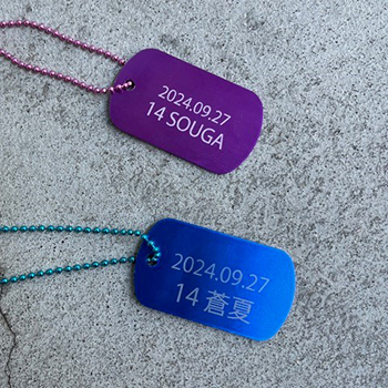 | 内容 | ふろん太、またはワルンタのデザインが描かれたプレートに好きな文字をレーザーでマーキングできます。数字、アルファベット、10文字以内であれば何でもOKです。 |