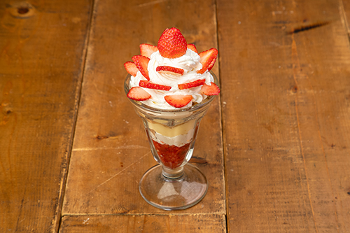 かわさきいちごを贅沢に使用したパフェ。今年はパンナコッタ、自家製ジャム入り。