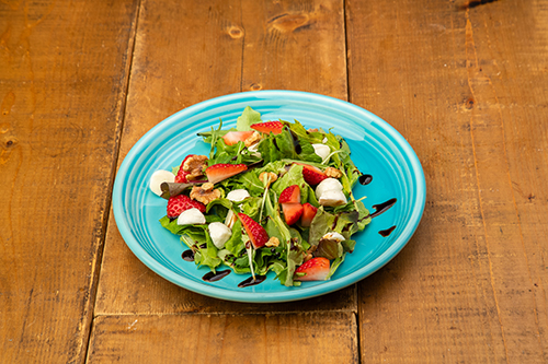 クルミをアクセントに加え自家製のドレッシングでいただくいちごのサラダ