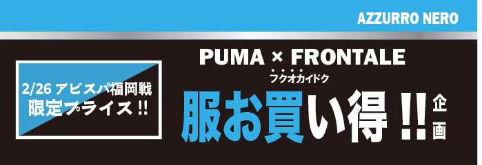 川崎フロンターレオフィシャルグッズショップ「AZZURRO NERO」では、アウェイ・アビスパ福岡戦からの限定企画として、2月26日(水)~28日(金)の3日間限定で「服お買い得(フクオカイドク)企画」を実施いたします。