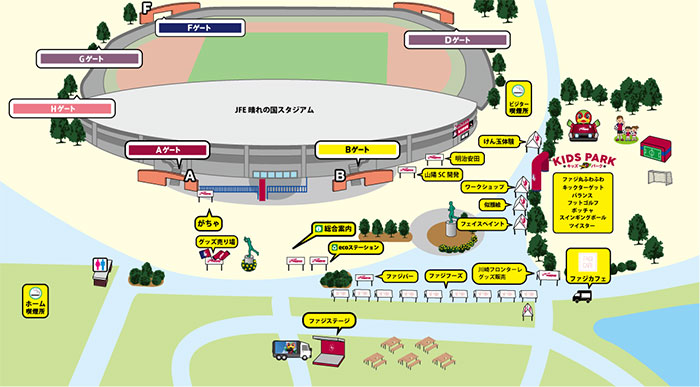 TEL 044-767-6111(営業時間 11:30~21:00/月曜定休 ※月曜日が祝日の場合は翌火曜日がお休みとなります。またホームゲーム等開催日は変更の可能性あり)