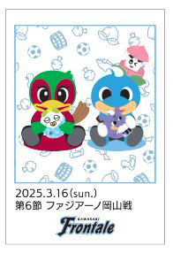 川崎フロンターレマスコットとファジアーノ岡山のファジ丸くんがデザインされた巾着です。