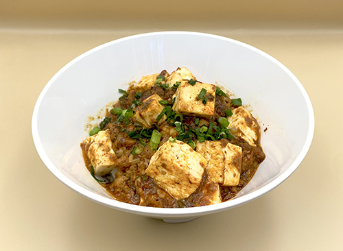 ピリッと痺れる辛さが病みつきになる麻婆豆腐をどんぶりにした“ジェジ丼”。