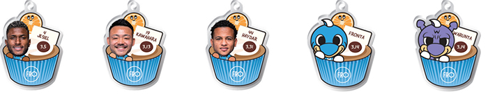 上記メニューを注文された方のみ、お好きな選手またはマスコットの「FRO CAFEオリジナルキーホルダー」を550円(税込)でご購入いただくことが可能です。