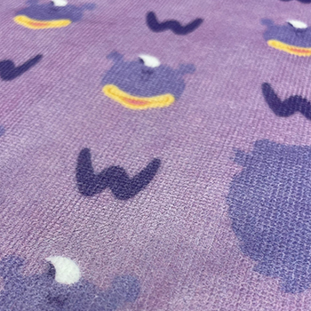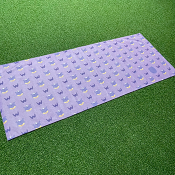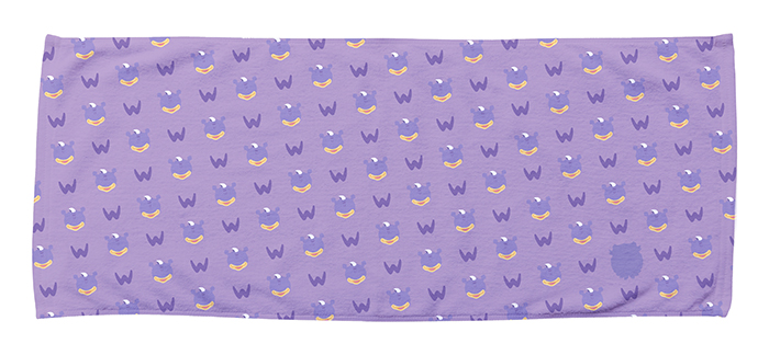 がま口と丸底ミニ巾着にも使用しているワルンタモチーフの総柄が可愛く仕上がったことで、急遽フェイスタオルも製作!! きっとワルイことがキレイさっぱり拭われる!?