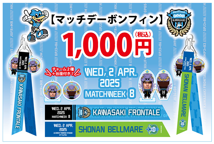 対戦チーム名や対戦日の記された、ボンフィンキーホルダー。今シーズンよりボンフィンの幅をサイズUP!!