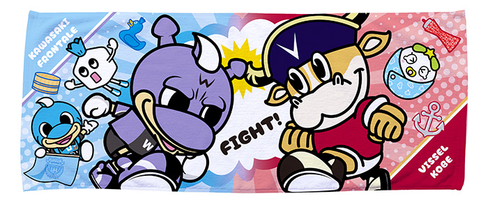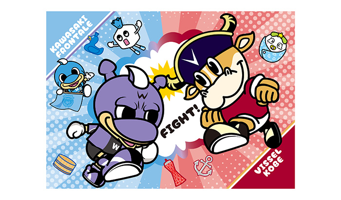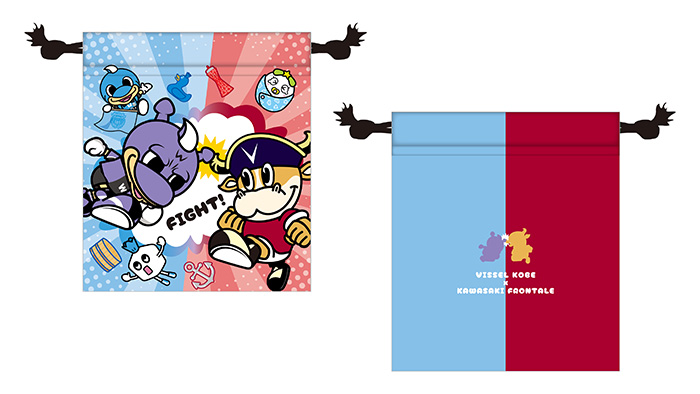 川崎フロンターレマスコットとヴィッセル神戸のモーヴィがデザインされた巾着です。