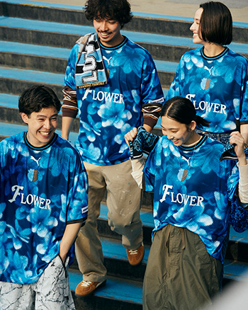 BEAMS SPORTSとプーマ、川崎フロンターレよる共同企画は、チームのサポーターであるファン、地域住民、スタッフ、選手の家族などにフォーカスしました。チームの象徴である青と黒を基調とし、チームのサポーターを“黒子”と表現した「アオクロコ(青黒子)」をコンセプトにアパレルコレクションを製作しました。