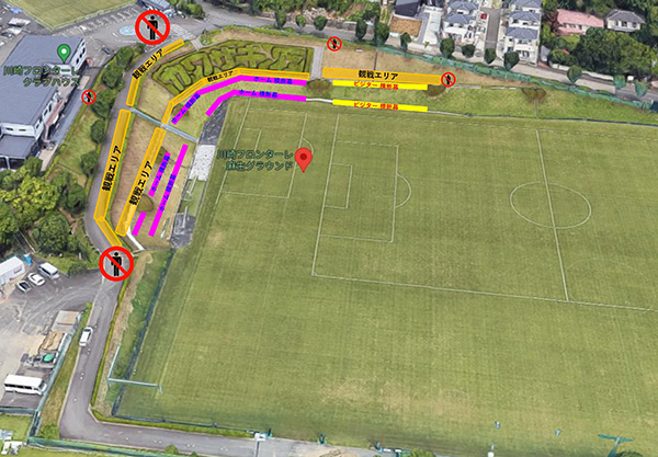 ・麻生グラウンド周辺道路での立ち見は、周辺住民の方の通行の妨げとなるため、絶対におやめください。