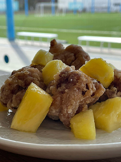 ジューシーなドールのパイナップルとAnker フロンタウン生田でも人気のFromKitchenデリの唐揚げを、特製甘酢あんで絡めました。
